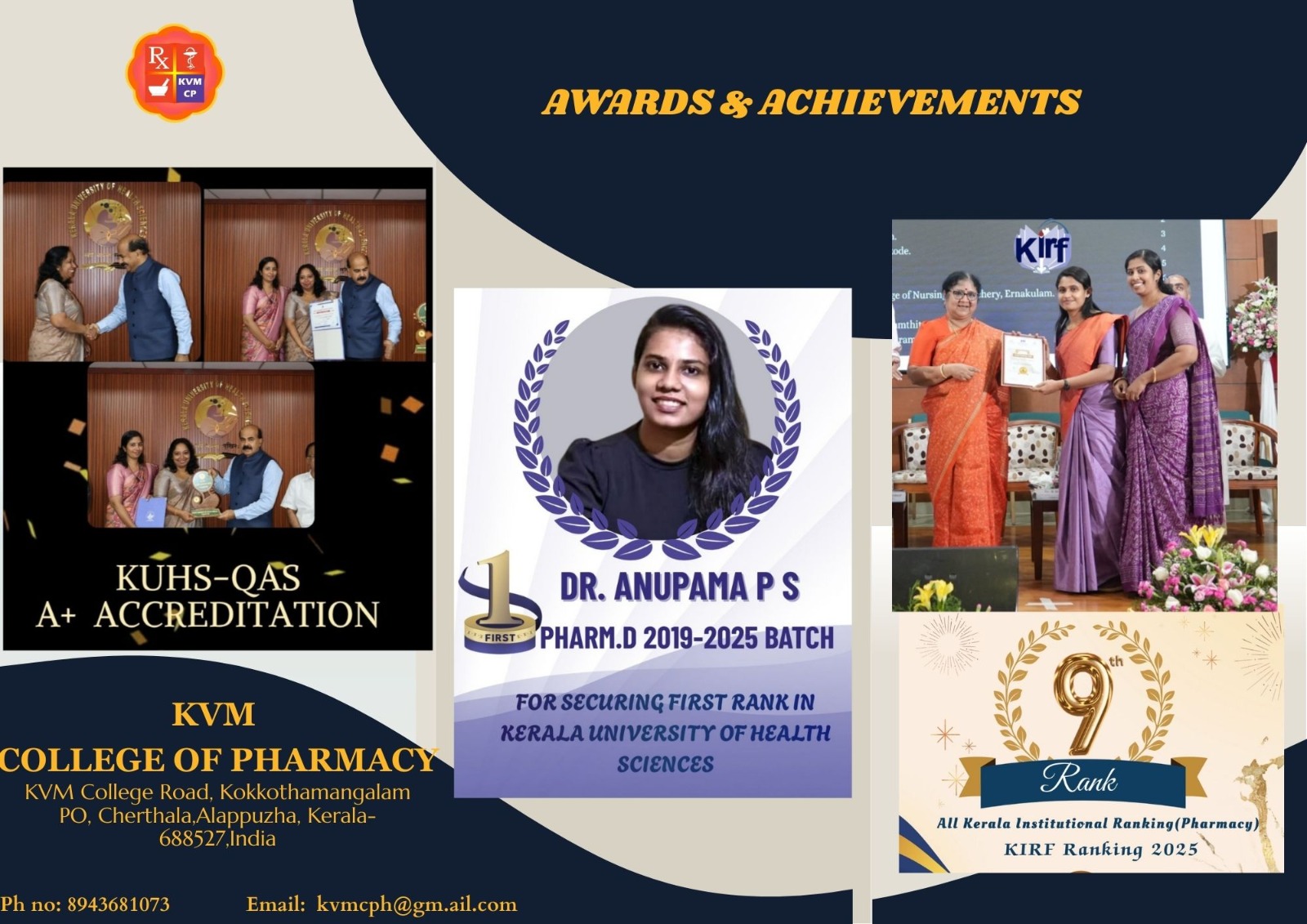 KVM College of Pharmacy located in Cherthala, Alleppey, Kerala established in 2010 has a campus spread over a spacious area with imposing building, lush green campus & unpolluted environment with magnificent infrastructure.